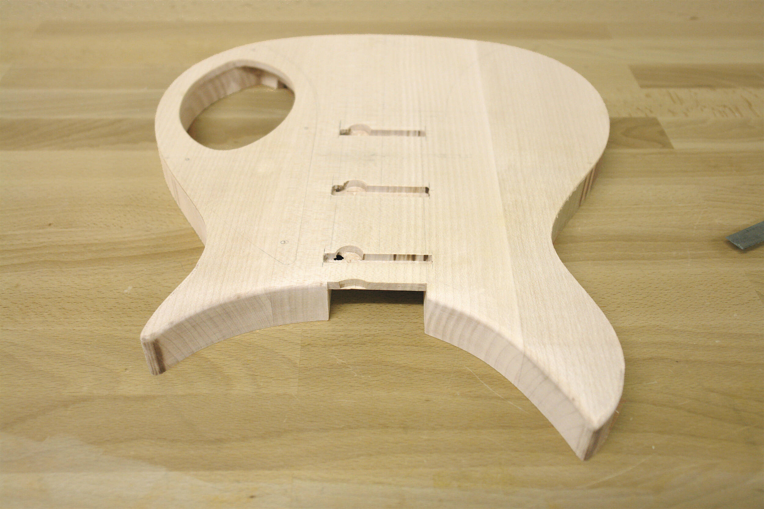 Hier der obere Teil des zweiteiligen Bodys, in den der oben gezeigte Hals eingeleimt wurde.
